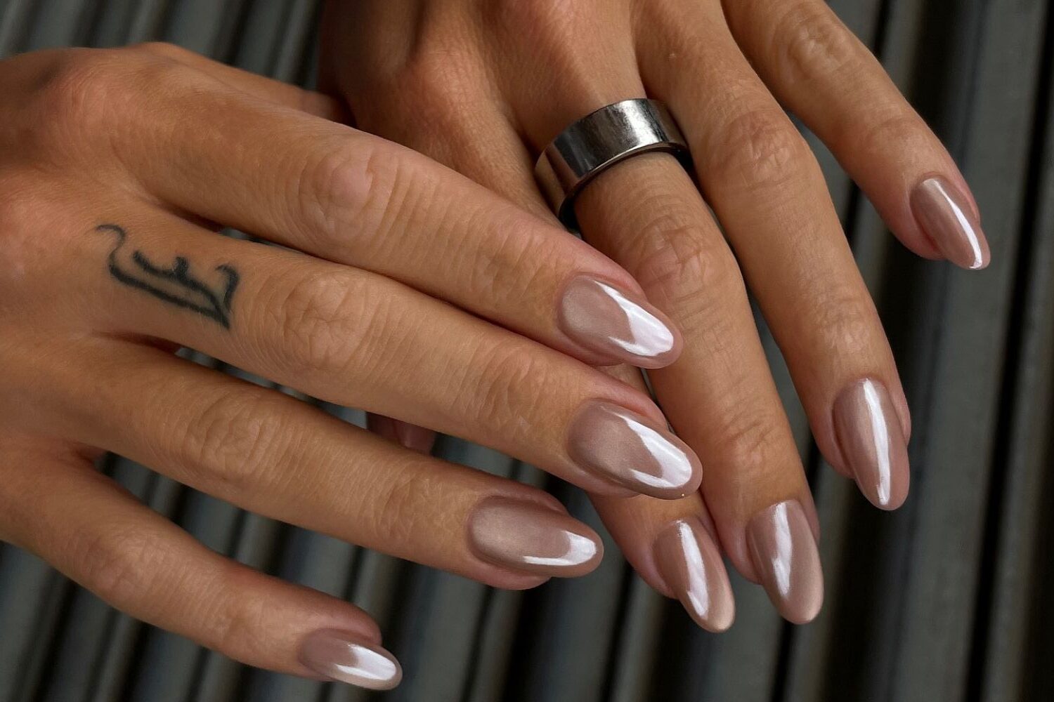 This set leans into nude cat eye nails with a light rosy sheen and an almost mirror-like effect. The gentle contrast in the magnetic line offers subtle elegance, making this a versatile look for everyday.