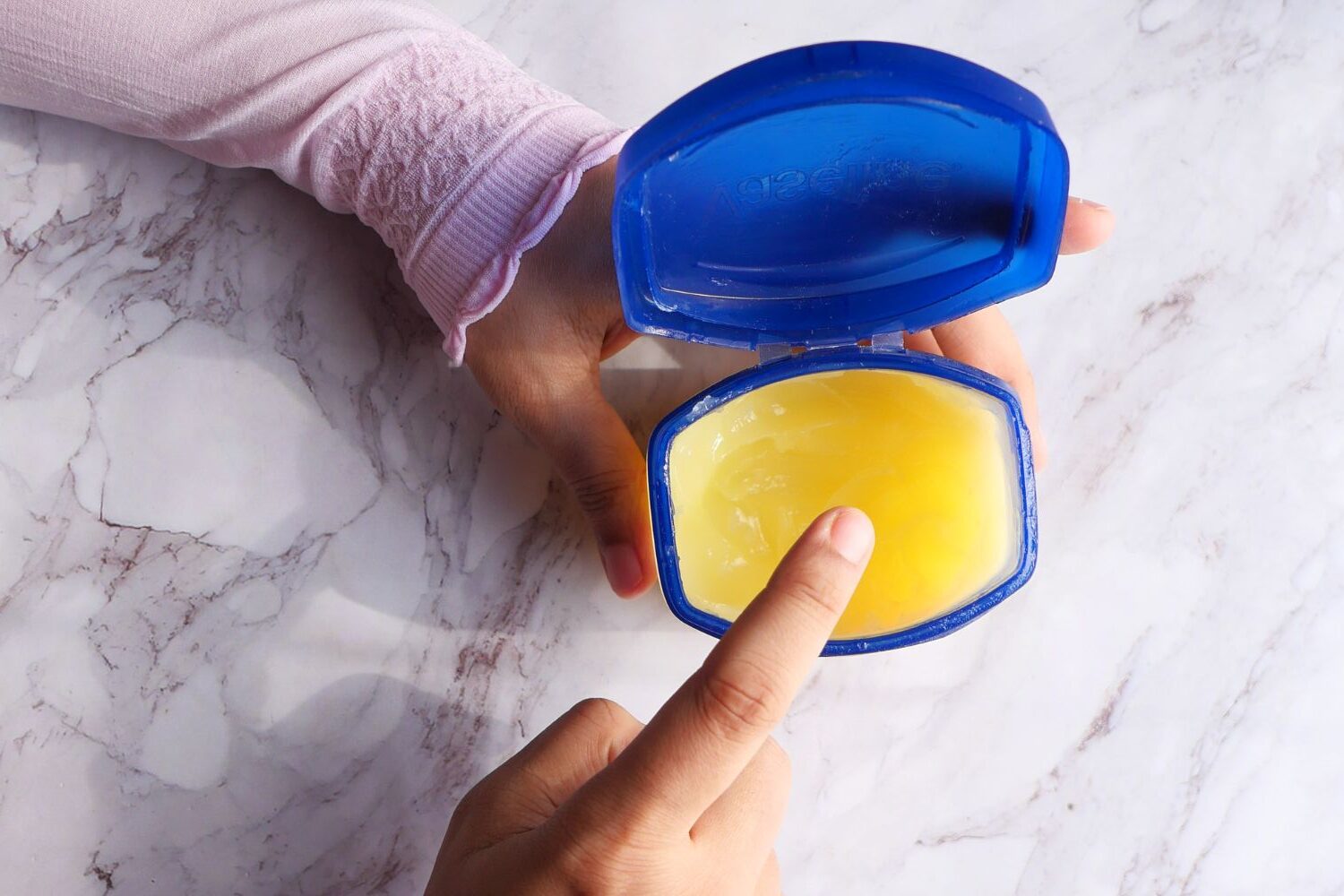 Natural oils like olive oil or a little lemon juice can be combined with Vaseline for extra nourishment and brightness.