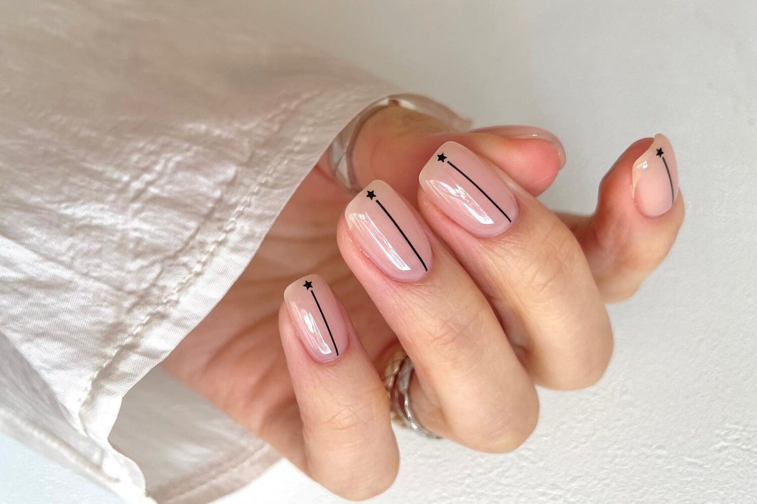 Featuring clean vertical lines with tiny stars, this design is an example of minimalist nails square perfection. Great for those who love simple classy nails design ideas with an edgy, elegant touch. It works beautifully on all skin tones for a versatile everyday nails option that feels modern yet timeless.